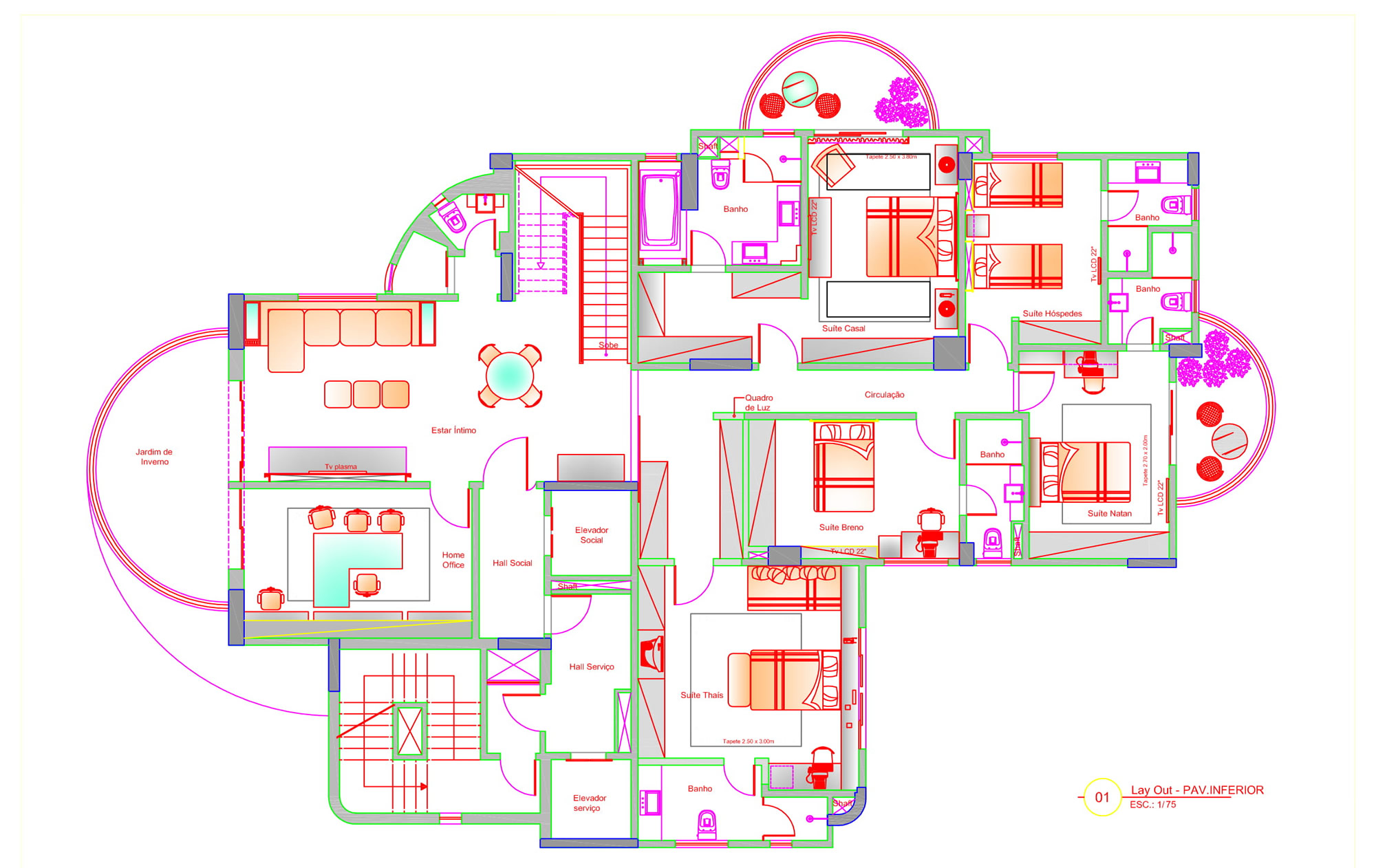 Área Privativa de 575m² + 5 Suítes + Gabinete